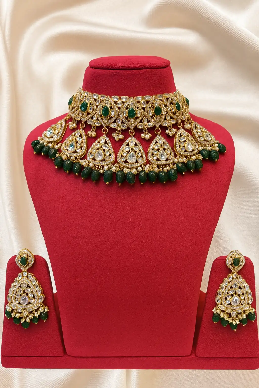 EAGLE JEWELLERS – GREEN COLOUR KUNDAN CHOKER SET CH-K-035